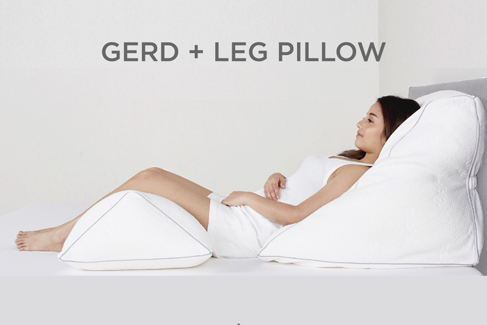 5) GERD Pillow หมอนรูปทรงสามเหลี่ยมที่ออกแบบให้มีความชัน 30-45 องศา เพื่อผู้นอนที่มีอาการกรดไหลย้อน ไม่สามารถนอนราบตามปกติได้ ช่วยลดอาการแสบหน้าอก ไอ ทำจากเส้นใย 2 ชนิด ใยที่มีความแน่นอยู่ด้านล่างเพื่อรองรับหลังใยด้านบนคือเส้นใยที่นุ่ม เพื่อให้หนุนศีรษะได้อย่างสบาย สามารถปรับระดับความชันได้