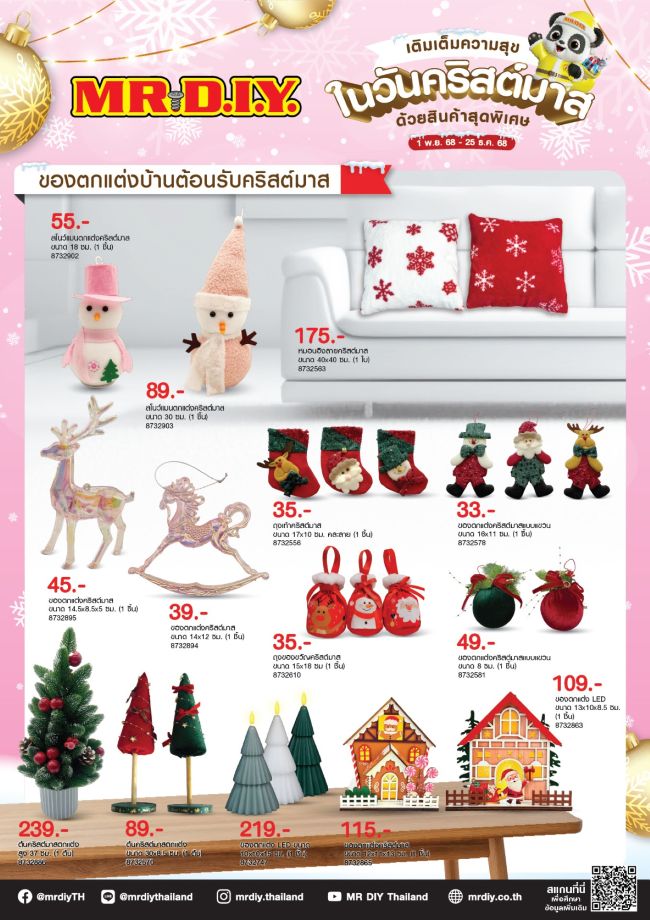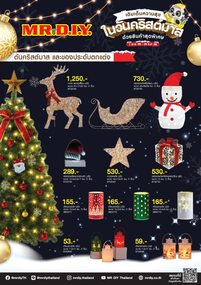 มิสเตอร์. ดี.ไอ.วาย. นำเสนอสินค้าตกแต่ง “เติมเต็มความสุขในวันคริสต์มาส” รวม 210 รายการ ในราคาเริ่มต้นเพียง 17 บาท อาทิ