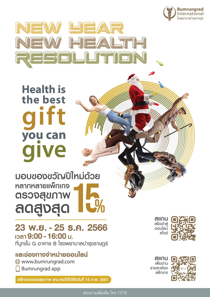 โรงพยาบาลบำรุงราษฎร์ ห่วงใยสุขภาพประชาชน จัดหลากหลายแพ็กเกจตรวจสุขภาพลดสูงสุด 15 % เพื่อให้คุณมอบเป็นของขวัญให้คนที่คุณรักในช่วงเทศกาลปีใหม่นี้ ภายใต้คอนเซ็ปต์ New Year New Health Resolution โดยผู้ที่สนใจสามารถหาซื้อแพ็กเกจได้ที่บูทชั้น G อาคาร B โรงพยาบาลบำรุงราษฎร์ ตั้งแต่วันนี้ – 25 ธ.ค. 2566 เวลา 9:00 – 16:00 น.