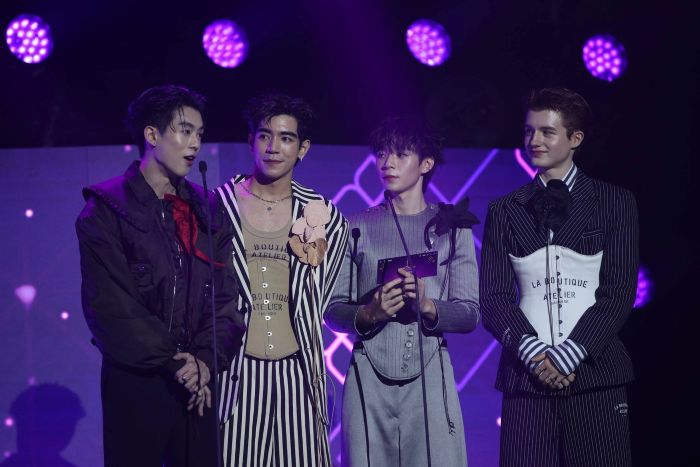 ต่อกันด้วยผลรางวัลศิลปินกลุ่มแห่งปี งานนี้นักกีฬาฮอกกี้ทีมชาติ คิน-นอร์ท-ทีม ร่วมใจกันมาประกาศรางวัลให้กับ PERSES ที่ได้รับรางวัลนี้ โดยคุณภุริปพัฒน์ ภัทรติมานนท์ ผู้จัดการฝ่ายบริหารภาพลักษณ์องค์กร สำนักยุทธศาสตร์ บริษัท ซีพีแรม จำกัด ขึ้นมอบดอกไม้แสดงความยินดี