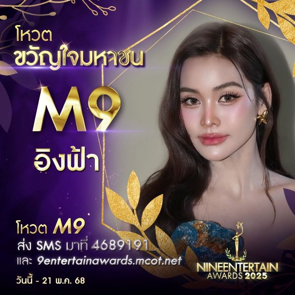 ร่วมสร้างตำนาน ร่วมสร้างกำลังใจ ร่วมโหวตผู้เข้าชิงรางวัล “ขวัญใจมหาชน” “#9entertainawards2025”