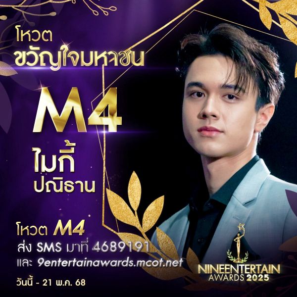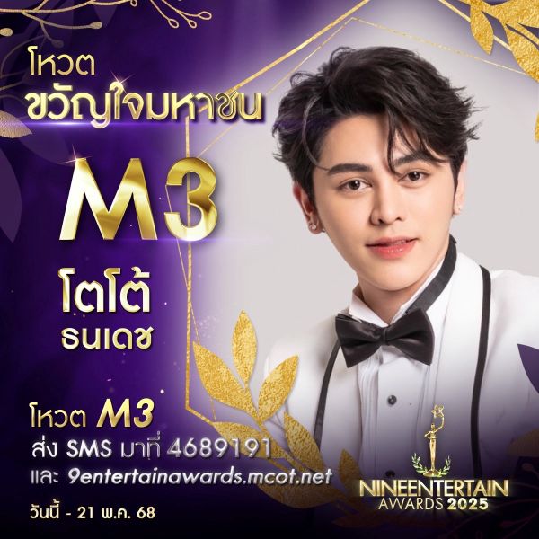 ร่วมเป็นส่วนหนึ่งของรางวัล “NINEENTTERTAIN AWARDS 2025” (ไนน์เอ็นเตอร์เทนอวอร์ด 2025) และสามารถติดตามรายละเอียดเพิ่มเติมได้ใน รายการไนน์เอ็นเตอร์เทน ทาง ช่อง 9 กด 30 , https://nineentertain.mcot.net, www.facebook.com/9entertain และ YouTube: NineEntertain Officialโดยจะมีการประกาศผลอย่างเป็นทางการในงานประกาศผลรางวัลเกียรติยศคนบันเทิง “ไนน์เอ็นเตอร์เทน อวอร์ด 2025” วันพฤหัสบดีที่ 22 พฤษภาคม 2568 ณ ศูนย์วัฒนธรรมแห่งประเทศไทย