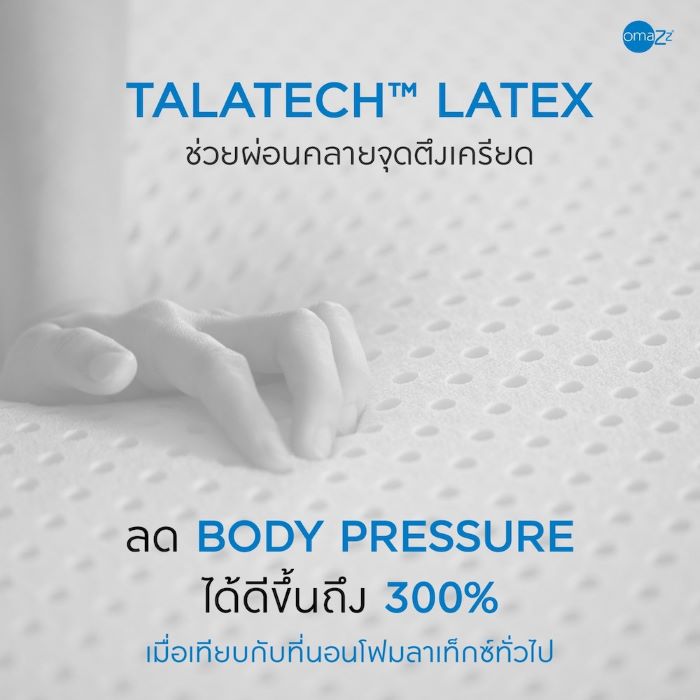 มาพร้อมโครงสร้างเซลล์แบบเปิด (Opened-Cell) ที่เพิ่มการไหลเวียนของมวลอากาศบริสุทธิ์เพื่อระบายความอับชื้น และมอบความเย็นสบายในการพักผ่อน มาพร้อมกับผ้าหุ้ม Omazz Cotton Knit มีเทคโนโลยี Built-in® สารจากธรรมชาติ Sanicott ป้องกันไรฝุ่นและสารก่อภูมิแพ้ตามธรรมชาติ