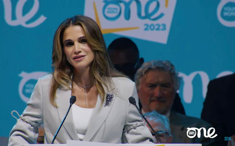 โอกาสนี้สมเด็จพระราชินีราเนียแห่งจอร์แดน (H.M. Queen Rania of Jordan) ได้กล่าวสุนทรพจน์ในพิธีเปิดงาน One Young World 2023 ว่า ความท้าทายและปัญหาต่างๆของโลกไม่ว่าจะเป็นการเปลี่ยนแปลงสภาพภูมิอากาศ จำนวนผู้ลี้ภัยที่เพิ่มมากขึ้น เป็นเรื่องเร่งด่วนที่จะต้องใช้พลังคนรุ่นใหม่ในเวทีOne Young World ร่วมมือกันหาแนวทางแก้ปัญหาด้วยความสันติ ซึ่งผู้นำรุ่นใหม่ในเวทีนี้จะเป็นพลังขับเคลื่อนสำคัญและเป็นแรงบันดาลใจให้เยาวชนทั่วโลกในการร่วมสร้างการเปลี่ยนแปลงทางบวกพร้อมส่งต่อโลกใบนี้ที่ดีกว่าให้กับคนรุ่นหลังต่อไป