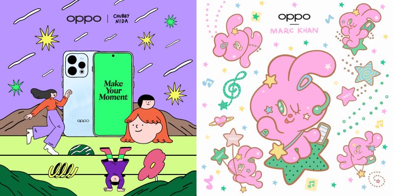 ความพิเศษในครั้งนี้ OPPO ได้จับมือกับ 2 ศิลปินไทย ได้แก่ คุณนิดา – Chubbynida เจ้าของคาแรกเตอร์เด็กหญิงผมแดงสุดยูนีคกับลายเส้นที่เป็นเอกลักษณ์ และ คุณมาร์ค – MARC KHAN เจ้าของคาแรกเตอร์กระต่ายสีชมพูที่โดดเด่นด้วยสไตล์สดใสขี้เล่น มาร่วมสร้างสรรค์ผลงานคอลแลปภายใต้ธีม “Young & Free” ที่ถ่ายทอดความสดใส และความรู้สึกเป็นอิสระในแบบของคนรุ่นใหม่ได้อย่างลงตัว