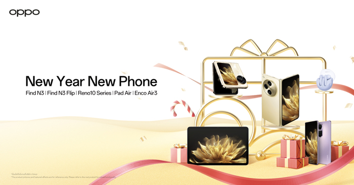 OPPO ฉลองความสุขส่งท้ายปี มอบของขวัญให้แฟนๆ ด้วยการจัดงาน New Year New Phone Event พร้อมมอบความสุขที่เลือกได้ส่งท้ายปี ผ่านโปรโมชันแคมเปญ New Year New Phone ที่ขนสมาร์ตโฟนและอุปกรณ์ IoT กันมาแบบฉ่ำ ทั้งลดและแถม พร้อมให้แฟนออปโป้ได้ไปทดลองสัมผัสหาซื้อสมาร์ตโฟนใหม่ที่มาพร้อมของแถม และข้อเสนอพิเศษอีกมากมาย ที่ M LIFESTYLE HALL ชั้น G ศูนย์การค้าเดอะมอลล์ไลฟ์สโตร์ บางกะปิ ตั้งแต่วันที่ 25 ธันวาคม – 3 มกราคม 2567