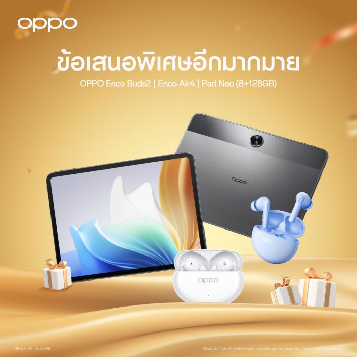 ให้คุณเป็นเจ้าของสมาร์ตโฟนมาตรฐานแฟลกชิปที่เหนือกว่า OPPO Find X8 Pro, OPPO Find X8, สมาร์ตโฟนถ่ายคนแบบมือโปร OPPO Reno12 Pro 5G, OPPO Reno12 5G, และ OPPO Reno12 F 5G สมาร์ตโฟนหวานใจสายโหด ตอบโจทย์ทุกเอนเตอร์เทน OPPO A3 Pro 5G, OPPO A3, และ OPPO A3x อุปกรณ์ IoT สุดสมาร์ท OPPO Pad 3 Pro, OPPO Enco Air4, และ OPPO Watch X ได้ในข้อเสนอสุดพิเศษอีกมากมาย สนใจสามารถติดต่อสอบถามได้ที่ตัวแทนจำหน่ายทั่วประเทศ