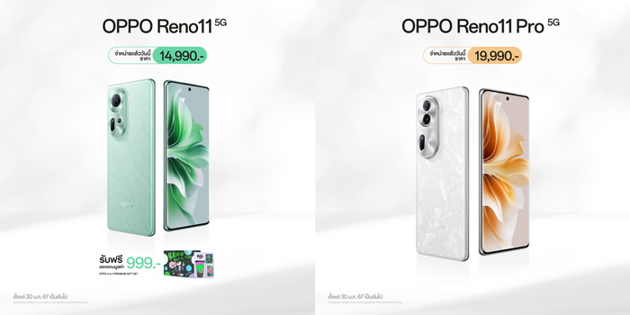 ออปโป้ ไทยแลนด์ ประกาศวางจำหน่าย “OPPO Reno11 5G” และ “OPPO Reno11 Pro 5G” อย่างเป็นทางการในประเทศไทย สมาร์ตโฟนถ่ายคนอย่างโปรรุ่นใหม่ล่าสุด ยกระดับแนวคิดถ่ายคนอย่างโปรไปอีกขั้นกับการพัฒนาก้าวกระโดดครั้งใหญ่ในการถ่ายภาพคนระดับมืออาชีพให้ภาพสวยคมชัดระดับ DSL โดยวางจำหน่ายแล้ว 2 รุ่น ได้แก่ OPPO Reno11 5G ราคา 14,990 บาท และ OPPO Reno11 Pro 5G ราคา 19,990 บาท