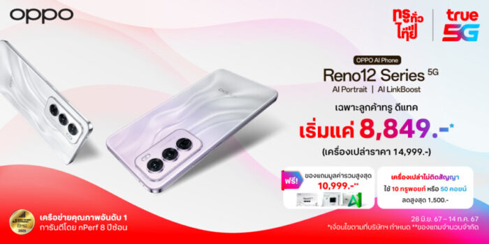 OPPO Reno12 Series 5G ใหม่ ถ่ายรูปแบบโปร ดีไซน์ล้ำ สัมผัสประสบการณ์ AI เต็มรูปแบบ พร้อมโปรโมชันพิเศษจากทรู! ในราคาสุดคุ้ม เริ่มต้นเพียง 8,849 บาท