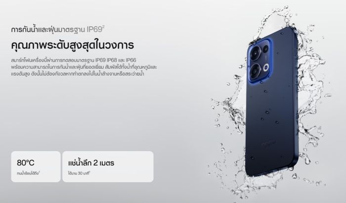 นอกจากนี้ยังเป็นสมาร์ตโฟนหนึ่งเดียวในราคาระดับกลางที่สามารถถ่ายภาพใต้น้ำ ได้ด้วยมาตรฐานกันน้ำ IP69 รองรับการถ่ายภาพใต้น้ำที่ความลึกสูงสุด 2 เมตร นานสูงสุด 30 นาที และยังมาพร้อม ฟังก์ชันระบายน้ำออกโดยการกดเพียงครั้งเดียว มอบประสบการณ์การถ่ายภาพที่ท้าทาย