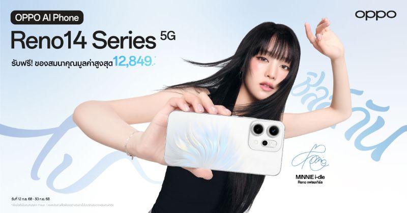 ห้ามพลาด! รีบไปเป็นเจ้าของ OPPO Reno14 Series 5G พร้อมรับทันทีของสมนาคุณสุดพิเศษ ได้ที่ OPPO Brand Shop และตัวแทนจำหน่ายที่ร่วมรายการทั่วประเทศ ตั้งแต่วันที่ 12-30 กันยายน 2568 นี้เท่านั้น!