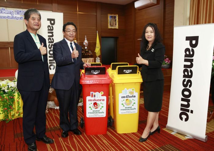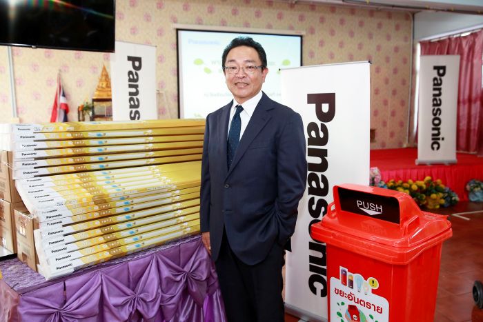 นายทาคาฮิโระ คุโมเดะ กล่าวต่อว่า “ล่าสุด พานาโซนิค ในประเทศไทย ได้จัดกิจกรรม “พานาโซนิค ชวนแยกขยะ ลดมลภาวะในชุมชน” เพื่อมอบชุดถังขยะแยกประเภท จำนวน 8 ถัง ให้แก่ โรงเรียนวัดคุณหญิงส้มจีน มิตรภาพที่ 64 พร้อมนำทีมงานงานพานาโซนิค ร่วมทำกิจกรรมส่งเสริมการเรียนรู้เรื่องการแยกขยะที่ถูกวิธี ให้แก่น้อง ๆ นักเรียน เพื่อปลูกฝังวินัยในการรักษาสิ่งแวดล้อม เพื่อสภาพแวดล้อมที่น่าอยู่อย่างยั่งยืน อีกทั้งยังได้มอบ หลอดไฟพานาโซนิค แอลอีดี ประหยัดพลังงาน จำนวน 100 หลอด เพื่อทดแทนหลอดไฟเดิมที่ชำรุด สร้างความปลอดภัยให้แก่คณะครูและนักเรียนในโรงเรียน นอกจากนี้เรายังได้มีการมอบชุดถังขยะแยกประเภท จำนวน 8 ถัง ให้แก่โรงเรียนวันครู 2502 ด้วยเช่นกัน”