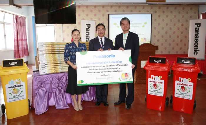 พานาโซนิคในประเทศไทยลงพื้นที่จังหวัดปทุมธานี จัดกิจกรรม “พานาโซนิคชวนแยกขยะลดมลภาวะในชุมชน” ภายใต้โครงการ “พานาโซนิค แคร์ (Panasonic Cares)” ปีที่ 2 มอบ “ชุดถังขยะแยกประเภท” พร้อมหลอดไฟ พานาโซนิค แอลอีดี ประหยัดพลังงาน ให้แก่ โรงเรียนวัดคุณหญิงส้มจีน มิตรภาพที่ 64 และโรงเรียนวันครู 2502 ในจังหวัดปทุมธานี เพื่อปลูกจิตสำนึกด้านสิ่งแวดล้อมให้เยาวชน ได้เรียนรู้การคัดแยกขยะอย่างถูกวิธีก่อนทิ้ง ช่วยกันลดปัญหาปริมาณขยะตกค้าง สร้างสิ่งแวดล้อมชุมชนให้มีคุณภาพอย่างยั่งยืน