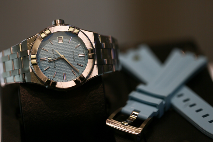 MAURICE LACROIX รุ่น AIKON Automatic Limited Summer Edition มีให้เลือกสามขนาดเคส โดยแต่ละขนาดมีลักษณะเฉพาะของตัวเอง ตัวเลือก ตัวเรือนขนาด 35 มม. มาพร้อมกับหน้าปัด Ballerina Pink ซึ่งเป็นสีที่คล้ายกับรูปลักษณ์ของท้องฟ้ายามค่ำคืนก่อนที่ดวงอาทิตย์จะลับขอบฟ้า หรือผู้สวมใส่สามารถเลือกใช้หน้าปัดที่แต่งกายด้วย Tanager Turquoise ซึ่งเป็นสีที่ชวนให้นึกถึงน้ำทะเลตื้น ทั้งสองรุ่นมี index เพชรเพื่อแสดงชั่วโมง ลิมิเต็ดซัมเมอร์เอดิชั่นขนาด 39 มม. เหมาะกับข้อมือทั้งชายและหญิง โดยมาในสี Ballerina Pink และTanager Turquoise ให้ความดึงดูดมีเสน่ห์และความมีชีวิตชีวาที่อ่อนเยาว์ สาวก Maurice Lacroix จะรับรู้ภาษาการออกแบบที่น่าดึงดูดของ AIKON