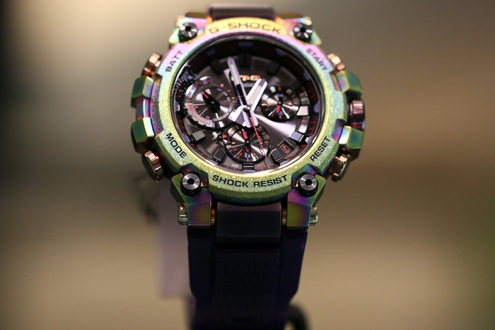 CASIO เผยโฉม G-SHOCK รุ่น Aurora Oval MTG-B3000PRB-1ADR Limited Edition เพียง 100 เรือนเฉพาะในงานเท่านั้น เรือนเวลาที่เปล่งประกายด้วยการออกแบบโลหะรูปแบบใหม่ เป็นการผสมผสานเทคนิคดั้งเดิมตั้งแต่การคัดสรรวัสดุ การทำสี รวมถึงการตกแต่งชิ้นงานให้สมบูรณ์แบบ โดยการออกแบบนี้ได้รับแรงบันดาลใจมาจากสีสันของแสงออโรรา บอเรลลีส (หรือที่รู้จักกันในชื่อ แสงเหนือ) โดดเด่นบนขอบตัวเรือนสเตนเลสสตีล ที่ผ่านกระบวนการ Recrystallisation และ Deep-layer hardening เพื่อเพิ่มลวดลาย และความคงทน อีกทั้งเทคนิค rainbow ion-plated (IP) เพื่อให้ได้ขอบตัวเรือนที่มีเอกลักษณ์ไม่เหมือนใคร เป็นการนำเสนอรูปแบบความงามที่น่าประทับใจผ่านคอลเลคชั่น MTG-B3000 Aurora Oval เรือนนี้ พร้อมทั้งเปิดตัวครั้งแรกในไทยกับ G-SHOCK Metal face ทั้ง 3 รุ่น ได้แก่ GM-5600CL-3DR, GM-2100CL-5ADR และ GM-110CL-6ADR (เพียงรุ่นละ 10 เรือน) นาฬิกาซีรีส์ใหม่ที่ได้รับแรงบันดาลใจจากสไตล์หรูหราแบบออฟโรด โดยกรอบโลหะมีการเคลือบสีด้วยเทคนิคไอออน Ion-plated (IP) ไล่ระดับการขัดพื้นผิวโลหะเพื่อสร้างรูปลักษณ์ที่หรูหราบนตัวเรือน ผสมผสานกับสายสีกึ่งโปร่งแสงแบบด้าน นอกจากนี้ภายในงานยังมีนาฬิกาไฮไลท์อื่นๆ อีกมากมาย