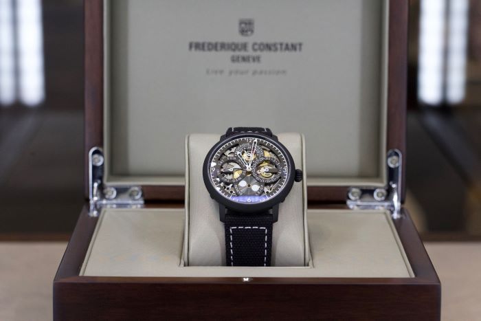 ภายในงานพบกับไฮไลท์ นาฬิกาที่มีเพียง 1 เรือนในประเทศไทย และผลิตจำนวนเพียง 35 เรือนทั่วโลก จากแบรนด์ FREDERIQUE CONSTANT มาพร้อมกับฟังก์ชันปฏิทินตลอดชีพ ด้วยดีไซน์หน้าปัด HEARTBEAT แบบ SKELETON สไตล์ร่วมสมัย โครงหน้าปัดทั้งหมดใช้สีเทาดำผิวด้าน ตัดด้วยสีขาวและสารเรืองแสงสีขาวของสเกลกับหลักแสดงค่าต่างๆ รวมถึงชิ้นส่วนกลไกสีเงิน เฟืองสีทองและสกรูสีน้ำเงิน ของชุดกลไก เคลือบผิวตัวเรือน วงฝาหลัง และเม็ดมะยมเป็นสีเทาแอนธราไซต์ด้วยเทคนิค DLC ราคา 699,000 บาท