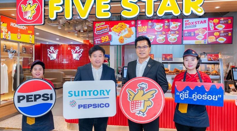 บริษัท ซันโทรี่ เป๊ปซี่โค เบเวอเรจ (ประเทศไทย) จำกัด ผู้ผลิตและจัดจำหน่ายเครื่องดื่มภายใต้แบรนด์สินค้าของซันโทรี่และเป๊ปซี่โคในประเทศไทย ประกาศความร่วมมือกับ ธุรกิจห้าดาว (Five Star) ธุรกิจ แฟรนไชส์อาหาร บริษัท ซีพีเอฟ เรสเทอรองท์ แอนด์ ฟู้ดเชน จำกัด ในกลุ่ม บริษัท เจริญโภคภัณฑ์อาหาร จำกัด (มหาชน) หรือ ซีพีเอฟ พร้อมจำหน่ายผลิตภัณฑ์เครื่องดื่มจาก ซันโทรี่ เป๊ปซี่โค ประเทศไทย ในร้านค้าแฟรนไชส์จำหน่ายอาหารในเครือ ธุรกิจห้าดาว อาทิ ซุ้มไก่ย่าง-ไก่ทอดห้าดาว กระทะเหล็ก Hi Pork เป็ดเจ้าสัว และข้าวมันไก่ไห่หนาน ซึ่งในปัจจุบันมีมากกว่า 5,000 ราย ทั่วประเทศ และเตรียมเปิดตัวแคมเปญสุดพิเศษ “คู่ซี้ คู่อร่อย” เร็ว ๆ นี้