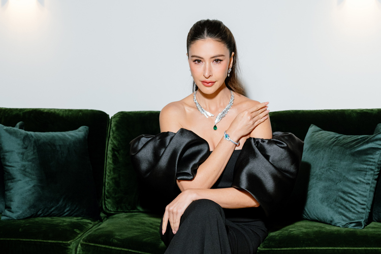 ศรีริต้า เจนเซ่น สวมใส่สร้อยคอ Voluptuous Borealis ที่เมซงหยิบโมเมนต์ชวนหลงใหลของแสงออโรร่า มาใส่ไว้ในจิวเวลรี่ชั้นสูงชิ้นนี้ โดยไฮไลต์อยู่ที่มรกตแซมเบีย ที่สะท้อนความงามของม่านแสงที่สลับกันพลิ้วพาดผ่านท้องฟ้ายามค่ำคืน เข้าคู่กับเรือนเวลาไฮจิวเวลรี่ในคอลเลกชั่น Treasures โดดเด่นด้วยพื้นหน้าปัดแบล็ค โอปอล ล้อมรอบด้วยเพชรทรงมาร์คีส์ – ซิกเนเจอร์คัตเลื่องชื่อของเพียเจต์