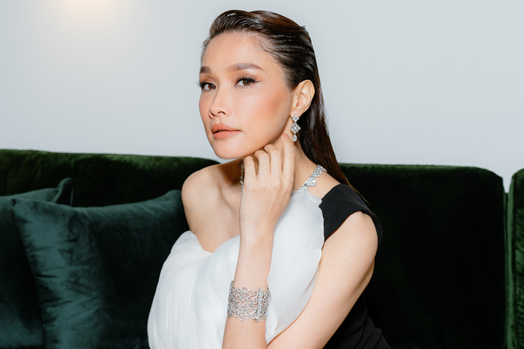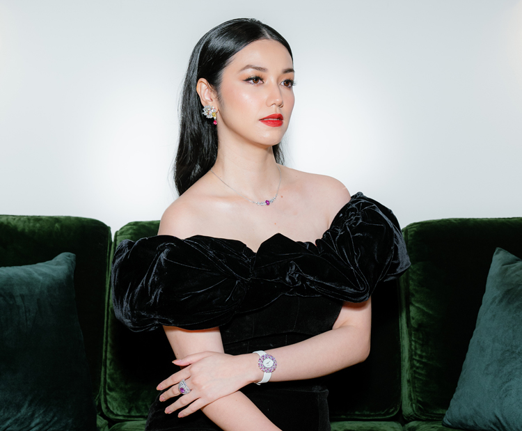 ชา อัลยาห์ยา สวมใส่เซ็ตเครื่องประดับชั้นสูง ประกอบไปด้วยสร้อยคอและต่างหู Shimmering Savor ถ่ายทอดช่วงเวลาอันแสนพิเศษของเหล่าเพียเจต์ โซไซตี้เวเลิฟ เวเซีย สวมใส่ชิ้นงานไฮจิวเวลรี่อย่าง ต่างหู แหวน และนาฬิกา ที่โดดเด่นด้วยอัญมณีสีชมพูและการเจียระไนทรงมาร์คีส์