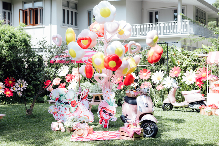 “Pink Rosa Café” คือ ผลงานล่าสุดจาก Vespa Thailand จุดเริ่มต้นของการเข้าสู่โลกแห่งศิลปะในช่วงเวลาของ “VESPARTÉ” และศิลปินไทยคนแรกที่ร่วมคอลแลป “ยูน – ปัณพัท เตชเมธากุล” ศิลปินชื่อดังที่ได้ถ่ายทอดงานดีไซน์ที่ได้รับแรงบันดาลใจมาจาก VESPA LX 125 I-GET PINK ROSA ที่ได้เผยโฉมความน่ารัก ถ่ายทอดผ่าน VESPISTI อย่าง ‘โบกี้ไลอ้อน’ ผสานการสร้างสรรค์ตัวตนและลายเส้นเป็นคาแรคเตอร์สุดโดดเด่น อย่าง ‘Rainbow Sue’ ที่นำเสนอช่วงเวลาอันน่าตื่นเต้นเหมือนการตกหลุมรักที่มีแสงแดดส่องสว่างอยู่ทุกวินาที และจิตใจของเราก็ผลิบาน เสมือนดอกกุหลาบสีชมพูในวันที่แดดส่องสดใส มาพร้อมลวดลาย Gingham ดอกเดซี่ ดอกกุหลาบ และสีชมพู จนเกิดเป็นความเอ็กซ์คลูซีฟ ที่พร้อมเป็นพื้นที่โอบรับให้ผู้คนได้เข้ามาสัมผัสช่วงเวลาแห่งการตกหลุมรัก และการเดินทางของชีวิตที่เต็มไปด้วยความรักที่โปรยปรายด้วยกลีบกุหลาบสีชมพู ภายในพื้นที่ของร้าน Patom Organic Living ตั้งแต่การออกแบบรายละเอียดของคาเฟ่ในโซนของ Indoor และ Outdoor บริเวณสวน “Pink Garden” ที่สร้างสรรค์มุมถ่ายรูปแสนเก๋มากมายและไม่ซ้ำใคร โดยเฉพาะการวางสัดส่วนของ Art Installation บนพื้นที่บริเวณคาเฟ่ที่สะท้อนภาพไลฟ์สไตล์และการใช้ชีวิตอย่างอิสระของ ‘Rainbow Sue’ ในบริบทต่างๆ ทั่วทั้งคาเฟ่