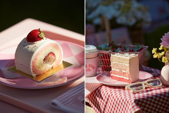 – Strawberry Roll Cake (สตรอเบอร์รี่ โรลเค้ก) เมนูเบเกอรี่สุดน่ารักโทนสีขาว-ชมพู กับความอร่อยของเค้กโรลเนื้อนุ่มและความสดของสตรอเบอร์รี่แบบเต็มคำ