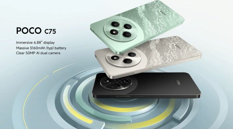 POCO C75 วางจำหน่ายแล้วด้วยจุดเด่นด้วยหน้าจอสมจริง 6.88 นิ้วและแบตเตอรี่ขนาดใหญ่ 5160mAh (typ)