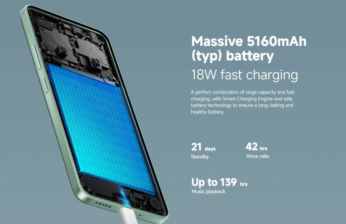 3 5160mAh หมายถึงค่าทั่วไปของความจุแบตเตอรี่ของ POCO C75