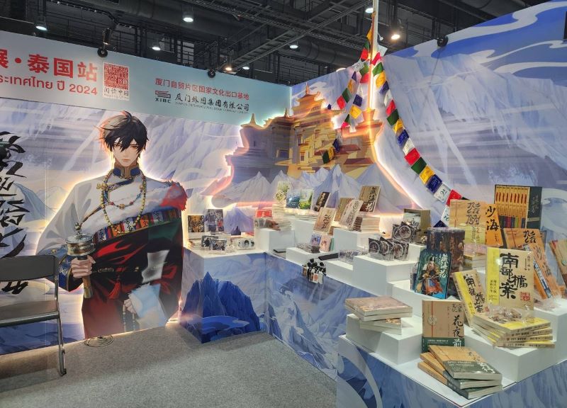 สำหรับนิทรรศการครั้งนี้ ผู้จัดงานเน้นการส่งออกวรรณกรรมออนไลน์จากจีนสู่ต่างประเทศ โดยออกแบบบูธในธีมของวรรณกรรมออนไลน์ชื่อดังอย่าง “ดอกไม้ทะเลทิเบต” ในจักรวาลของ “บันทึกจอมโจรแห่งสุสาน” หนังสือที่นำมาจัดแสดงประกอบด้วยวรรณกรรมออนไลน์ หนังสือภาพสำหรับเด็ก และหนังสือทั่วไปกว่า 700 ปก