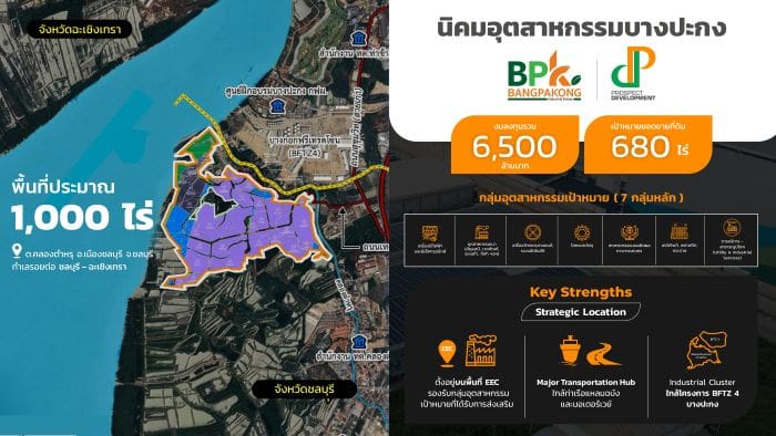 นางสาวรัชนี มหัตเดชกุล กรรมการผู้จัดการ บริษัท พรอสเพค ดีเวลลอปเมนท์ จำกัด ผู้พัฒนาและบริหาร ‘โครงการบางกอกฟรีเทรดโซน’ เปิดเผยว่า “การพัฒนานิคมอุตสาหกรรมบางปะกง นับเป็นก้าวสำคัญของ PD ในการต่อยอดศักยภาพ และสนับสนุนยุทธศาสตร์ชาติด้านเศรษฐกิจและการลงทุน โดยเฉพาะในพื้นที่ EEC ที่กำลังเป็นแม่เหล็กสำคัญในการดึงดูดนักลงทุนจากทั่วโลก เราจะดำเนินการภายใต้ความร่วมมือกับการนิคมอุตสาหกรรมแห่งประเทศไทย (กนอ.) เพื่อรองรับอุตสาหกรรมเป้าหมาย 7 กลุ่ม เช่น อุตสาหกรรมเกษตรและแปรรูปอาหาร, อุตสาหกรรมยานยนต์, อุตสาหกรรมชิ้นส่วนอิเล็กทรอนิกส์ และอุตสาหกรรมเบา รวมถึงอุตสาหกรรมดิจิทัลอย่าง ดาต้า เซ็นเตอร์, เทคโนโลยีคลาวด์”