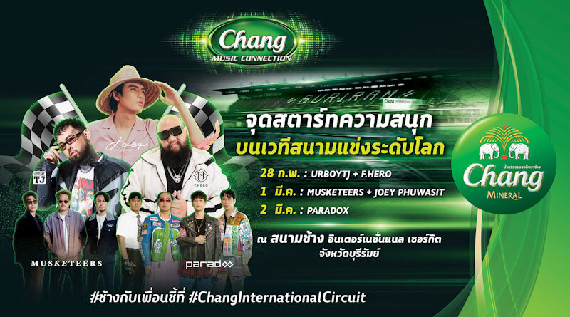 ฝ่ายจัดฯโมโตจีพี สนามประเทศไทย เผยเตรียมสร้างปรากฏการณ์ความสนุก-ความประทับใจเต็มรูปแบบ กับ “มอเตอร์สปอร์ต เฟสติวัล” วิถีไทย สุดอลังการ ล่าสุด “น้ำแร่ธรรมชาติ ตรา ช้าง” ประกาศรายชื่อศิลปินที่จะไปร่วมส่งมอบความสุขความมันส์ ด้วยคอนเสิร์ตสุดยิ่งใหญ่ Chang Music Connection จัดเต็มความบันเทิงจากศิลปินดัง พร้อมโปรดักชั่น เวที แสงสีเสียงเต็มพิกัด โดยคณะกรรมการจัดงานยืนยันปีนี้ กิจกรรมครบเครื่องอัดแน่น ทั้งมวยดังแห่งยุคในศึกมวยไทย วิถีถิ่นไทย รวมทั้งชม ช้อป ชิม ของดีของดังบุรีรัมย์และทั่วประเทศ เลือกซื้อสินค้าสำหรับชาวสองล้อ แบรนด์ดังมากมาย