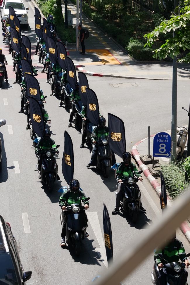 PUBG MOBILE ร่วมมือกับร้านอาหารและเครื่องดื่มใจกลางกรุงเทพฯ กว่า 10 แห่ง ตั้งแต่วันที่ 1-31 ธันวาคม พร้อมชูโปรโมชันอาหารและเครื่องดื่มสุดพิเศษสำหรับแฟน PUBG MOBILE ผู้เล่นสามารถแลกรับของที่ระลึกรุ่นพิเศษได้ร้านพาร์ทเนอร์ที่ร่วมรายการ พร้อมกิจกรรมพิเศษเฉพาะสาขาที่ NAISNOW Maidreamin KOF สาขาพารากอน และ Too Fast To Sleep สาขาสยามแสวคร์ นอกจากนี้ผู้เข้าร่วมงานจะได้เพลิดเพลินไปกับรถตุ๊กตุ๊กกว่า 40 คันที่ถูกนำมาออกแบบใหม่ในธีม PUBG MOBILE ซึ่งจะจอดกระจายอยู่ทั่วสถานที่จัดการแข่งขัน PMGC รอบสุดท้าย ณ สยามพารากอน ตั้งแต่วันที่ 1- 15 ธันวาคม ในขณะเดียวกัน แกรบ (Grab) บริการเรียกรถโดยสารยอดฮิตร่วมมือกับ PUBG MOBILE มอบสิทธิพิเศษสำหรับผู้โดยสารที่จะเดินทางไปงาน PMGC รอบสุดท้ายด้วยส่วนลด 15% พร้อมทั้งโปรโมตรายการ PMGC ด้วยขบวนรถธีมที่ร่วมออกแบบกับ PUBG MOBILE ในวันที่ 29 พฤศจิกายน ที่ผ่านมา
