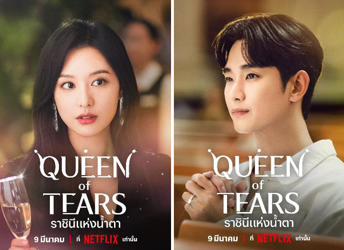 เตรียมสัมผัสพายุหมุนแห่งความโรแมนติกกับ ราชินีแห่งน้ำตา (Queen of Tears) ซีรีส์เกาหลีโรแมนติกคอเมดี้แห่งปีจาก Netflix ที่กำลังจะพร้อมสตรีมให้รับชมกันในวันที่ 9 มีนาคมนี้ โดยซีรีส์เรื่องนี้คือผลงานชั้นเยี่ยมที่เปี่ยมอารมณ์ความรู้สึก และการเล่าเรื่องที่เฉลียวฉลาด แถมยังได้นักแสดงนำระดับแม่เหล็กอย่างคิมซูฮยอนและคิมจีวอนมาแสดงคู่กัน ในเรื่องราวที่รังสรรค์อย่างประณีตโดยพัคจีอึน นักเขียนบทมากฝีมือเจ้าของซีรีส์ยอดฮิตอย่าง ปักหมุดรักฉุกเฉิน (Crash Landing on You) อีกด้วย ท่ามกลางฉากหลังที่ว่าด้วยการต่อสู้ด้วยเล่ห์เพทุบายอันโหดเหี้ยมในชีวิตการทำงานบริษัท ราชินีแห่งน้ำตา (Queen of Tears) ถักทอเรื่องราวอันน่าประทับใจของความรัก ความไม่ย่อท้อ และการพัฒนา พร้อมให้ปักหมุดเป็นซีรีส์สุดตื่นตาตื่นใจแห่งปีที่ไม่ว่าใครก็ห้ามพลาด!
