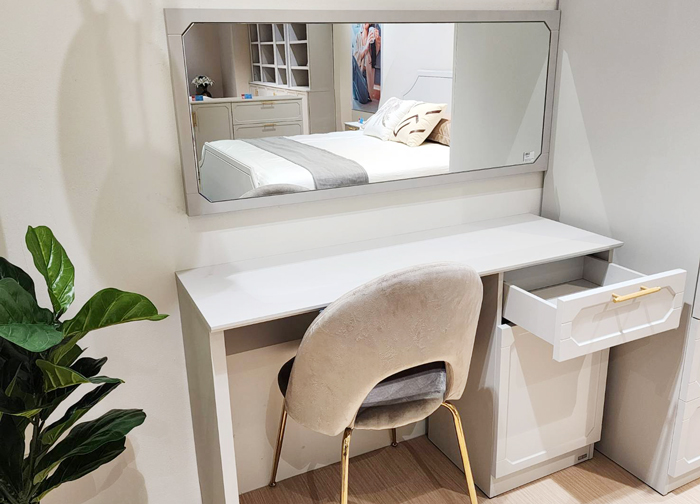 Quinn Collection มีเฟอร์นิเจอร์ทั้งสำหรับ Living room และ Bedroom ประกอบด้วย เตียง ตู้เสื้อผ้า โต๊ะข้างเตียง โต๊ะเครื่องแป้ง เป็นต้น รวมทั้งหมดกว่า 15 ชิ้น และมีโปรโมชั่นราคาพิเศษสำหรับลูกค้าที่ซื้อชุดห้องนอนในราคาราคาเริ่มต้นที่ 34,900 บาท ประกอบด้วย เตียงขนาด 6 ฟุต, ตู้เสื้อผ้า และโต๊ะเครื่องแป้ง