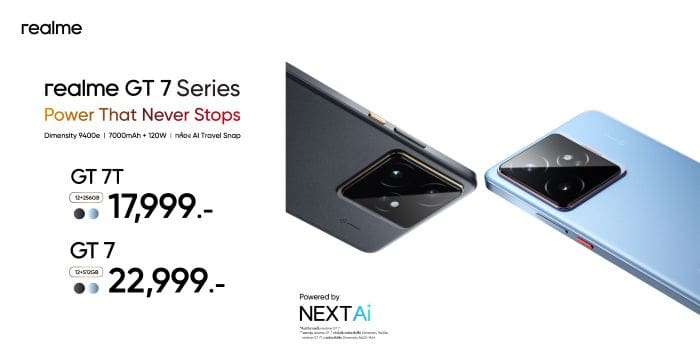 · realme GT 7 นำเสนอสเปก 12/512 GB ในราคา 22,999 บาท