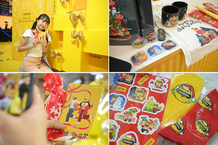 และเพื่อตอกย้ำความเป็นแบรนด์สมาร์ตโฟนชั้นนำที่รู้ใจคนรุ่นใหม่อย่างแท้จริง realme ยังร่วมมือกับนักวาดภาพประกอบชื่อดัง Viput A. ในการสร้างสรรค์คอลเลกชันลายการ์ตูนคริสต์มาสต์ในไอเทมสุดน่ารักสำหรับเทศกาลแห่งความสุขปีนี้โดยเฉพาะ โดยลูกค้าที่ซื้อสมาร์ตโฟน realme ภายในงานยังรับไอเทมสุดเอ็กซ์คลูซีฟนี้กลับบ้านไปอีกด้วย นอกจากนี้ realme ยังยกขบวนความสุขสนุกสนานมาสมนาคุณแก่ลูกค้าและผู้เข้าร่วมงานทุกท่าน ด้วยโซนกิจกรรมร่วมสนุกชิงรางวัลและของขวัญพรีเมียมต่าง ๆ มากมาย ซึ่งสร้างความสุขและความประทับใจแก่ผู้ที่เข้าร่วมกิจกรรมเป็นอย่างมาก