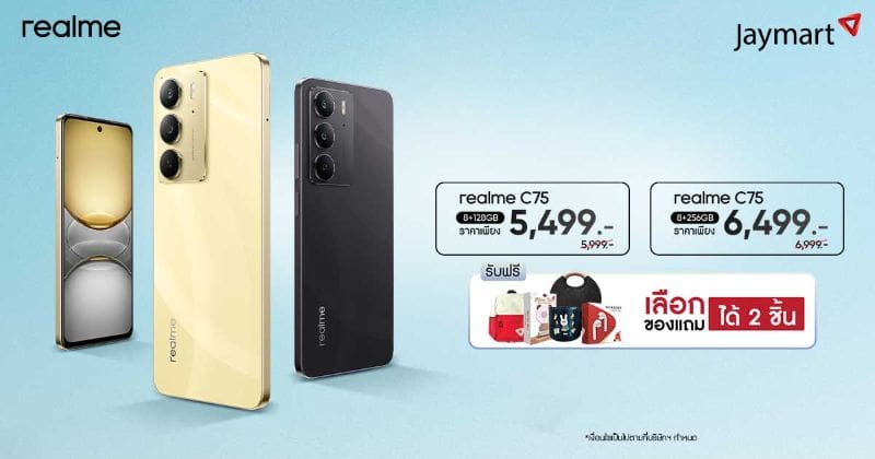 - realme C75 (8+256GB) ราคา 6,499 บาท จากปกติ 6,999 บาท