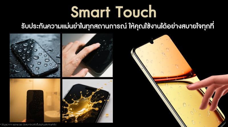นอกจากนี้ ยังมีเทคโนโลยี Smart Touch ที่ช่วยให้สัมผัสใช้งานหน้าจอได้แม่นยำ แม้ในสภาพแวดล้อมที่มือเปียกหรือใส่ถุงมือ พร้อมฟีเจอร์ SonicWave Ejection ช่วยขับไล่น้ำออกจากพอร์ต ให้มือถือของคุณกลับมาพร้อมใช้งานหลังเปียกน้ำได้อย่างรวดเร็ว