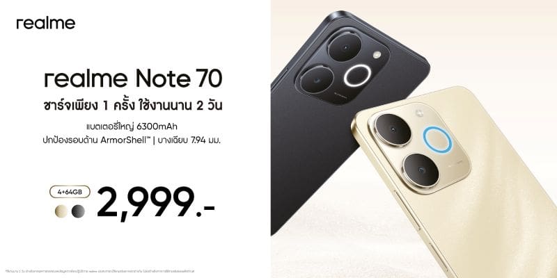 เปิดตัว “realme Note 70” มือถือของสายแอคทีฟตัวจริง “ชาร์จ 1 ครั้ง ใช้งานนาน 2 วันเต็ม” ราคาเพียง 2,999 บาท