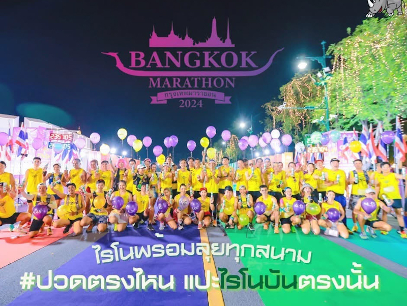 ภาพบรรยากาศงานวิ่ง Bangkok Marathon 2024 คึกคักเต็มไปด้วยพลังของนักวิ่ง ไรโนบัน (Rhinobun) ดีใจที่ได้เป็นส่วนหนึ่งในงานนี้ ร่วมสนับสนุนทุกก้าวของนักวิ่งทุกท่านสู่เส้นชัย