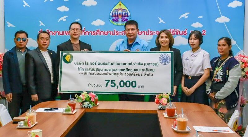 บริษัท ไรเดอร์ อินชัวรันส์ โบรกเกอร์ จำกัด (มหาชน) นำโดย นายซามูเอล ลิม ประธานเจ้าหน้าที่ฝ่ายการตลาด (CMO) ได้มอบเงินสนับสนุนจำนวน 75,000 บาท แก่กองทุนช่วยเหลือชุมชนและสังคมของสหกรณ์ออมทรัพย์ครูประจวบคีรีขันธ์ จำกัด เพื่อเป็นส่วนหนึ่งในการสนับสนุนการศึกษา การพัฒนาชุมชน และการช่วยเหลือสังคมในพื้นที่จังหวัดประจวบคีรีขันธ์ โดยมี นายพัฒชัย วิเศษสมบัติ ประธานสหกรณ์ออมทรัพย์ครูประจวบคีรีขันธ์ จำกัด เป็นผู้แทนรับมอบ