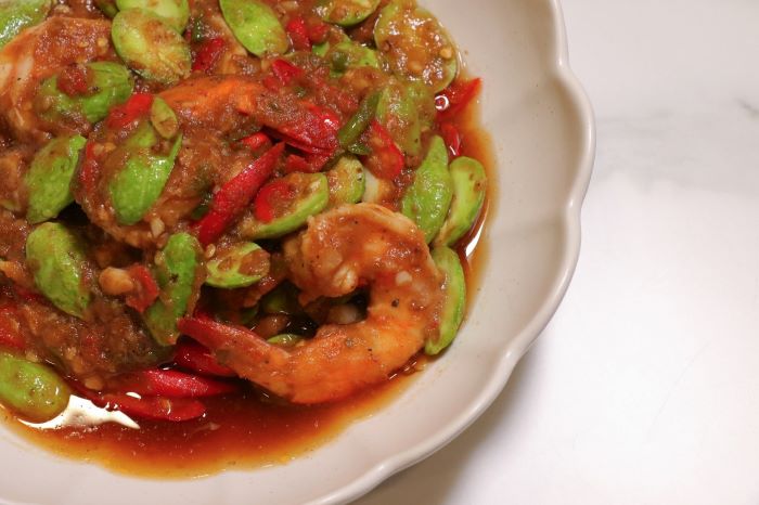 สะตอกุ้งกะปิ ใครที่ชื่นชอบสะตอ ต้องไม่พลาดเมนูนี้ ทั้งสะตอเม็ดอวบใหญ่ ผัดกับกะปิดีส่งตรงมาจากปักษ์ใต้ ทำให้รสชาติ เข้มข้นหอมอร่อย แถมเนื้อกุ้งสดใหม่ ตัวใหญ่เต็มคำ