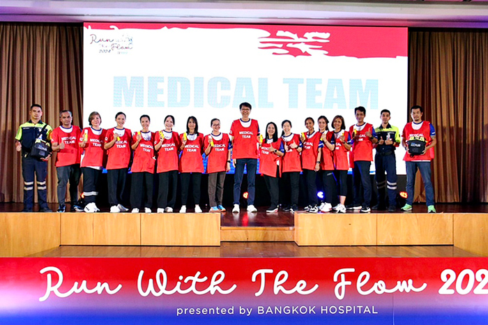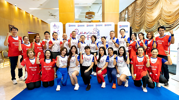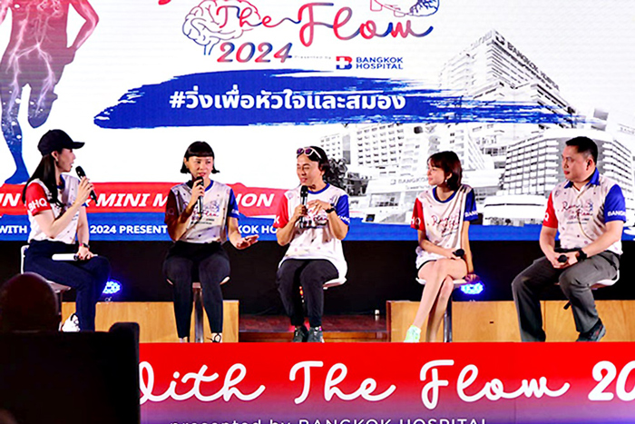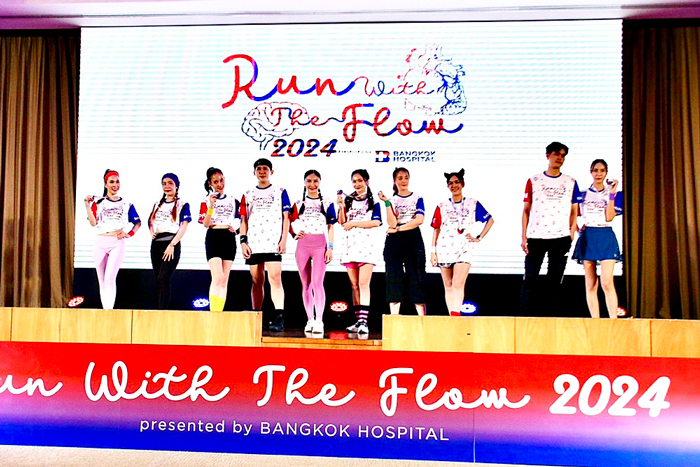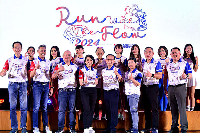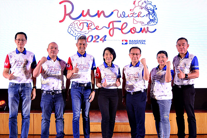 แพทย์หญิงเมธินี ไหมแพง ประธานคณะผู้บริหารกลุ่ม 1 และผู้อำนวยการโรงพยาบาลกรุงเทพ เปิดเผยว่า โรงพยาบาลกรุงเทพ เล็งเห็นถึงความสำคัญในการดูแลสุขภาพมุ่งเน้นไปที่การป้องกัน ดูแล มากกว่าการรักษา ผ่านการออกกำลังกายด้วยกิจกรรมการวิ่งเพื่อสุขภาพ RUN WITH THE FLOW presented by BANGKOK HOSPITAL 2024 #วิ่งเพื่อหัวใจและสมอง ซึ่งได้ผนึกความร่วมมือกันกับโรงพยาบาลกรุงเทพกลุ่ม 1 ทั้ง 8 โรงพยาบาลในกลุ่มภาคกลางและตะวันตก ประกอบด้วย รพ.กรุงเทพ สำนักงานใหญ่ ซึ่งมีรพ.หัวใจกรุงเทพ รพ.กรุงเทพอินเตอร์เนชั่นแนล รพ.มะเร็งกรุงเทพ วัฒโนสถ และในภาคตะวันตกมี รพ.กรุงเทพสนามจันทร์ รพ.กรุงเทพเมืองราช รพ.กรุงเทพเพชรบุรี และ รพ.กรุงเทพหัวหิน เราให้ความสำคัญกับโรคหลอดเลือดหัวใจ รวมถึงโรคทางสมองและระบบประสาท ซึ่งปัจจุบันมีแนวโน้มเพิ่มมากขึ้นทุกปีและเป็นภัยเงียบที่คร่าชีวิตคนที่เรารักไปอย่างไม่ทันตั้งตัว จึงมีความตั้งใจที่จะรณรงค์ให้ประชาชนเกิดความตระหนักรู้และตื่นตัวในการป้องกันโรค ซึ่งวิธีการรับมือที่ดีที่สุดคือ การป้องกัน เช่น การออกกำลังกายอย่างสม่ำเสมอ การตรวจสุขภาพเฉพาะทางเชิงลึก หรือการตรวจด้วยเครื่องมือพิเศษ ล้วนแล้วแต่มีความสำคัญ กลุ่มโรงพยาบาลของเรามี “CENTER of EXCELLENCE หรือ CoE” ของทั้งโรคหลอดเลือดหัวใจ โรคทางสมองและระบบประสาท รวมไปถึงโรคเฉพาะทางอื่น ๆ พร้อมให้การดูแลโดยแพทย์ผู้ชำนาญการสหสาขาวิชาชีพและเครื่องมือที่ทันสมัย เพื่อช่วยให้การวินิจฉัยและวางแผนแนวทางการรักษาได้อย่างตรงจุด