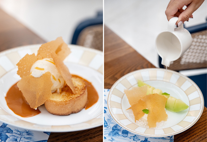 มะพร้าวพาเฟ่ท์สาคูเมลอน หรือ โทสต์ขนมปังบริออชราดซอสชาไทย
