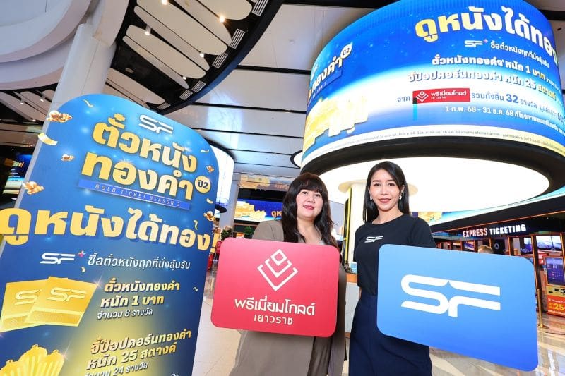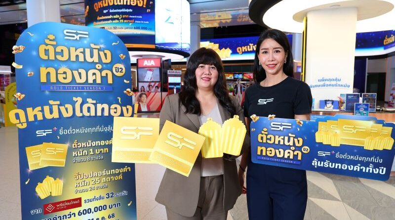บริษัท เอส เอฟ คอร์ปอเรชั่น จำกัด (มหาชน) โดย คุณธารทิพย์ ไกรสินธุ์ ผู้จัดการฝ่ายการตลาดภาพยนตร์ ร่วมกับ บริษัท พรีเมี่ยม โกลด์ เยาวราช จำกัด โดย คุณพัณณ์ภัสส์ ฝอยเพ็ชร ผู้ช่วยอำนวยการฝ่ายบริหารห้างทอง จัดต่อเนื่อง “ตั๋วหนังทองคำ ปี 2” หลังมอบโชคทองให้ผู้โชคดีในครั้งแรกไปแล้ว พร้อมลุ้นครั้งต่อไปเพียงเป็นสมาชิก SF+ (สมัครฟรี) และซื้อบัตรชมภาพยนตร์เรื่องใดก็ได้ที่โรงภาพยนตร์ในเครือ เอส เอฟ ทุกสาขาทั่วประเทศ ผ่านช่องทางออนไลน์แอปพลิเคชัน SF Cinema, www.sfcinema.com และ ตู้ขายตั๋วอัตโนมัติหน้าสาขา รับสิทธิ์ลุ้น “จี้ป๊อปคอร์นทองคำ” และรางวัลใหญ่ “ตั๋วหนังทองคำ” ตั้งแต่วันนี้เป็นต้นไป ถึง 31 ธันวาคม 2568