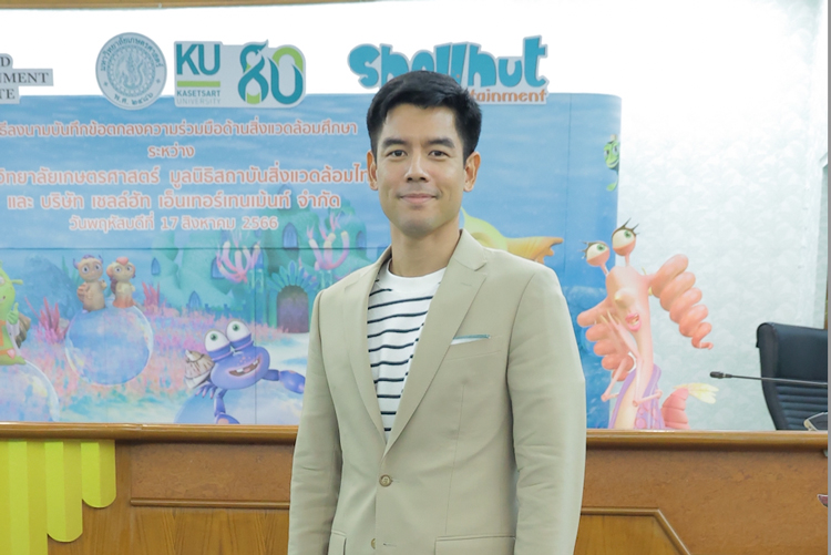 โน้ต วัชรบูล ลี้สุวรรณ นักแสดงหัวใจอนุรักษ์ ร่วมงานบันทึกข้อตกลงความร่วมมือด้านสิ่งแวดล้อมศึกษา โครงการ Shelldon Circularity ที่จัดขึ้นโดย บริษัท เชลล์ฮัท เอ็นเทอร์เทนเม้นท์ จำกัด มหาวิทยาลัยเกษตรศาสตร์ และ มูลนิธิสถาบันสิ่งแวดล้อมไทย เพื่อพัฒนาชุดความรู้ด้านสิ่งแวดล้อมศึกษา โดยมุ่งเน้นไปที่การปกป้องและอนุรักษ์ระบบนิเวศน์ทางทะเลกับ “เชลล์ดอน” พร้อมทั้งมีการนำเสนอแนวทางการแก้ปัญหาแบบบูรณาการ ที่สอดคล้องไปกับแนวคิดเศรษฐกิจหมุนเวียน (Circular Economy) ให้เกิดประโยชน์ในหลากหลายมิติ ไม่ว่าจะเป็นการลดการใช้ทรัพยากร ลดปริมาณขยะ เกิดการสร้างงาน สร้างอาชีพ และสร้างระบบเศรษฐกิจใหม่ให้กับชุมชนและสังคมในวงกว้าง ณ ห้องประชุมกำพลอดุลวิทย์ อาคารสารนิเทศ 50 ปี มหาวิทยาลัยเกษตรศาสตร์