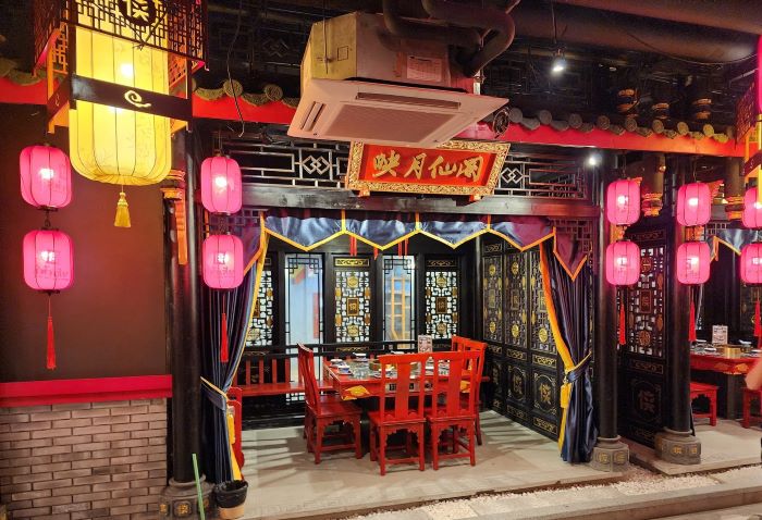 ภายในร้านเต็มไปด้วยมุมให้ถ่ายรูปฉ่ำ ตกแต่งสวยงาม ตระการตา ทั้งการตกแต่ง โครงสร้างภายนอก การออกแบบภายใน สถาปัตยกรรมสไตล์จีนโบราณ เหมือนยกโรงเตี๊ยมจักรพรรดิของประเทศจีนมาไว้ในเอ็ม บี เค เซ็นเตอร์ บอกเล่าเรื่องราวความโดดเด่นของหมู่บ้านโคมไฟ ดินแดนแห่งตำนานมังกร ณ ใจกลางหุบเขาอันงดงาม หมู่บ้านโคมไฟที่เต็มไปด้วยเสน่ห์ของวัฒนธรรมจีน แสงไฟระยิบระยับ โคมไฟประดับประดาทั่วดินแดนแห่งนี้ ผสมผสานกับตำนานมังกรอันน่าตื่นเต้น