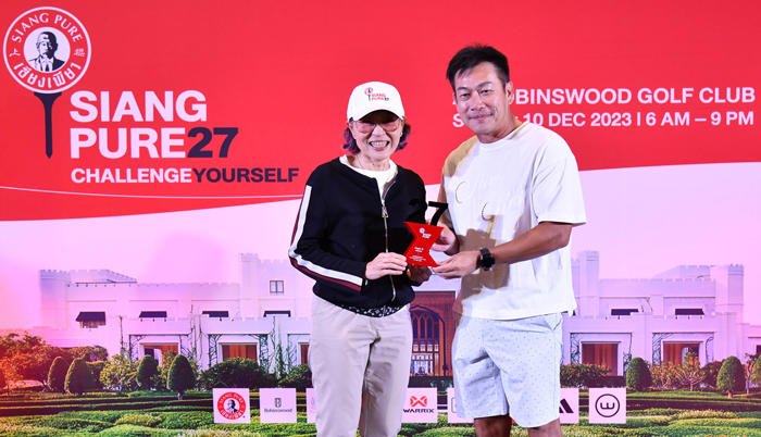 นอกจากนี้ก็เพื่อต่อยอดกิจกรรมด้านกีฬากอล์ฟที่ทางแบรนด์เซียงเพียวเองได้เป็นส่วนหนึ่งในผู้สนับสนุนนักกีฬากอล์ฟมืออาชีพ อย่าง “โปรพีเค” พัชรจุฑา คงกระพันธ์ สวิงมือ 1 ไทยดับเบิ้ลยู พีจีเอ ที่ได้มาเป็นแบรนด์แอมบาสเดอร์ด้านกีฬากอล์ฟคนแรกของเซียงเพียว ในปี 2566 นี้ ซึ่งล่าสุดโปรพีเค ก็เพิ่งคว้าเหรียญทองในประเภททีมนักกอล์ฟหญิง กีฬาเอเชียนเกมส์ ครั้งที่ 19 เมื่อเดือนตุลาคมที่ผ่านมา โดยในงาน SIANGPURE 27 โปรพีเคก็ได้มาชาลเล้นจ์แข่งตีไกลนักกอล์ฟทุกคนที่หลุม 18 พาร์ 5 และนี่ก็เป็นอีกหนึ่งความพิเศษที่เราอยากให้นักกอล์ฟที่มาเข้าร่วมทุกคนได้รับ เพราะนอกจากพวกเขาจะได้แข่งกับตัวเองแล้ว พวกเขาก็ยังจะได้แข่งขันกับนักกอล์ฟมืออาชีพด้วย”