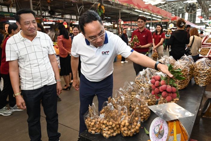 นายวิทยากร มณีเนตร อธิบดีกรมการค้าภายใน นายสมคิด จันทมฤก ผู้ว่าราชการจังหวัดปทุมธานี และนางสาวปณาลี ภัทรประสิทธิ์ ผู้ช่วยกรรมการผู้จัดการ ตลาดสี่มุมเมือง ร่วมเปิดเทศกาล “สี่มุมเมือง ไทยฟรุตเฟส 2025” อย่างเป็นทางการ ซึ่งเป็นความร่วมมือระหว่างตลาดสี่มุมเมืองกับภาครัฐ ประกอบด้วย กรมการค้าภายใน กระทรวงพาณิชย์ การท่องเที่ยวแห่งประเทศไทย (ททท.) และจังหวัดปทุมธานี เพื่อสร้างโอกาสทางการค้าและยกระดับรายได้ให้เกษตรกรไทยอย่างยั่งยืน ณ ตลาดสี่มุมเมือง จังหวัดปทุมธานี เมื่อวันที่ 12 มิถุนายน 2568