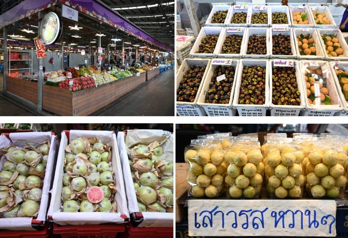 โดยเฉพาะในโซน “ตลาดผลไม้รวม สี่มุมเมือง” ที่มีผลไม้หมุนเวียนมาให้เลือกซื้อได้ตลอดทั้งปี ด้วยพื้นที่โซนตลาดผลไม้ขนาดใหญ่กว่า 50,000 ตารางเมตร ต่อเนื่องยาวตลอด 7 อาคาร และมีมากกว่า 1,700 แผงค้า พร้อมที่จอดรถสะดวกสบายทุกโซนตลาด ใกล้สนามบินดอนเมืองเพียง 10 นาที สินค้าครบ และเปิดบริการทุกวัน 24 ชั่วโมง