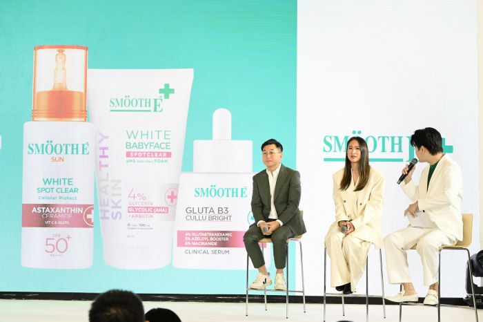 นายธนชัย ชัยกิตติวนิช ประธานเจ้าหน้าที่บริหาร สมูทอี บริษัท สยามเฮลท์ กรุ๊ป จำกัด เปิดเผยว่า “สมูทอี เป็น Medical Skincare หรือแบรนด์เวชสำอางที่ได้รับความไว้วางใจจากผู้บริโภคชาวไทยมากกว่า 30 ปี ผลิตภัณฑ์สมูทอีวางจำหน่ายในเมืองไทยเป็นครั้งแรกในปี ค.ศ 1991 หรือกว่า 33 ปีมาแล้ว เรามีนวัตกรรมที่ช่วยให้ผิวคนไทยสวยสุขภาพดีอย่างแท้จริง เช่น โฟมไม่มีฟอง ครีมลดรอยแผลเป็น กันแดดไร้เคมี เราเข้าใจดีว่า ความต้องการของ ผู้บริโภคมีความเปลี่ยนแปลงอยู่เสมอ ใจร้อนอยากเห็นผลไวจนอาจทำให้เกิดผลข้างเคียง สมูทอีจึงไม่หยุดนิ่งในการพัฒนานวัตกรรมเพื่อตอบความต้องการของผู้บริโภคที่ต้องการผลิตภัณฑ์ที่มีประสิทธิภาพ เห็นผลจริง อ่อนโยน ไม่ทำร้ายผิว ในวันนี้ เราได้เปิดตัวนวัตกรรม เวชสำอางสมูทอี เพื่อผิวบอบบาง 3 สเต็ป ภายใต้จุดยืน “อ่อนโยน…มีประสิทธิภาพเห็นผล” ซึ่งเป็นสิ่งที่สมูทอียึดมั่นมาโดยตลอด โดยการคิดค้นและพัฒนานวัตกรรมโดยกลุ่มทีมงานเภสัชกรและผู้เชี่ยวชาญด้านผิวหนังและยาของสมูทอี มีแพทย์ผู้เป็นเชี่ยวชาญเป็นที่ปรึกษาในการพัฒนานวัตกรรม เพื่อตอบโจทย์ความต้องการของผู้บริโภคที่อยากมีผิวสวยสุขภาพอย่างปลอดภัย”